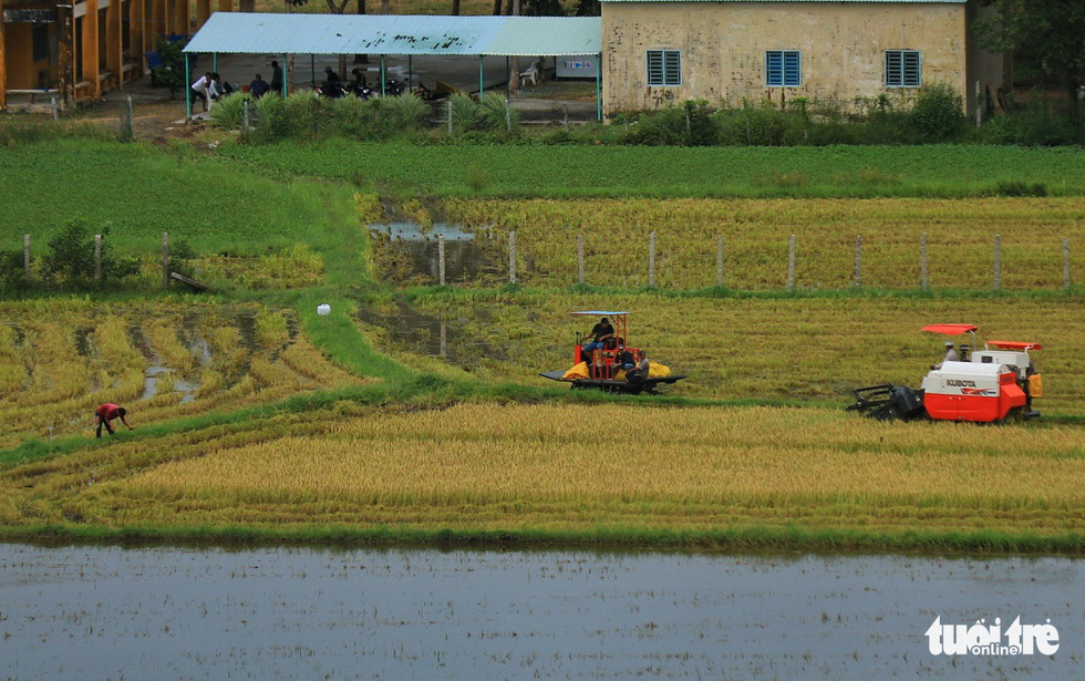 Mẫu ruộng đang được gặt, xong vụ mùa, người dân sẽ chuẩn bị cho vụ thu đông - Ảnh: NGUYỆT NHI