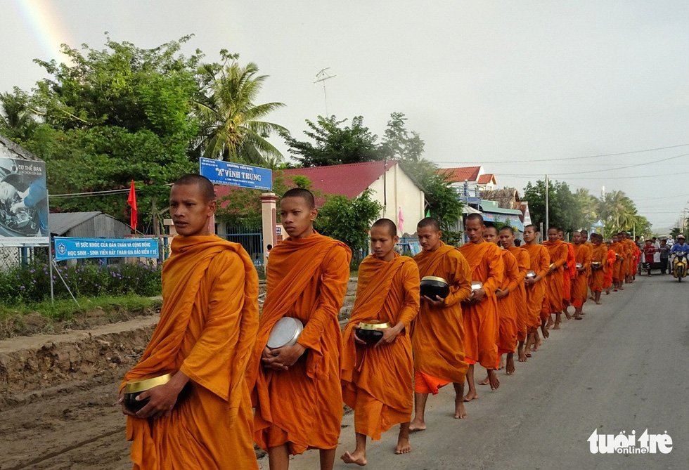 Những chú lục (tu báo hiếu cha mẹ) đi hành khất - Ảnh: NGUYỆT NHI